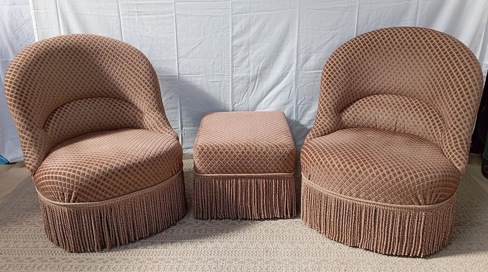 SALON 4 FAUTEUILS CRAPAUD & 2 OTTOMANS